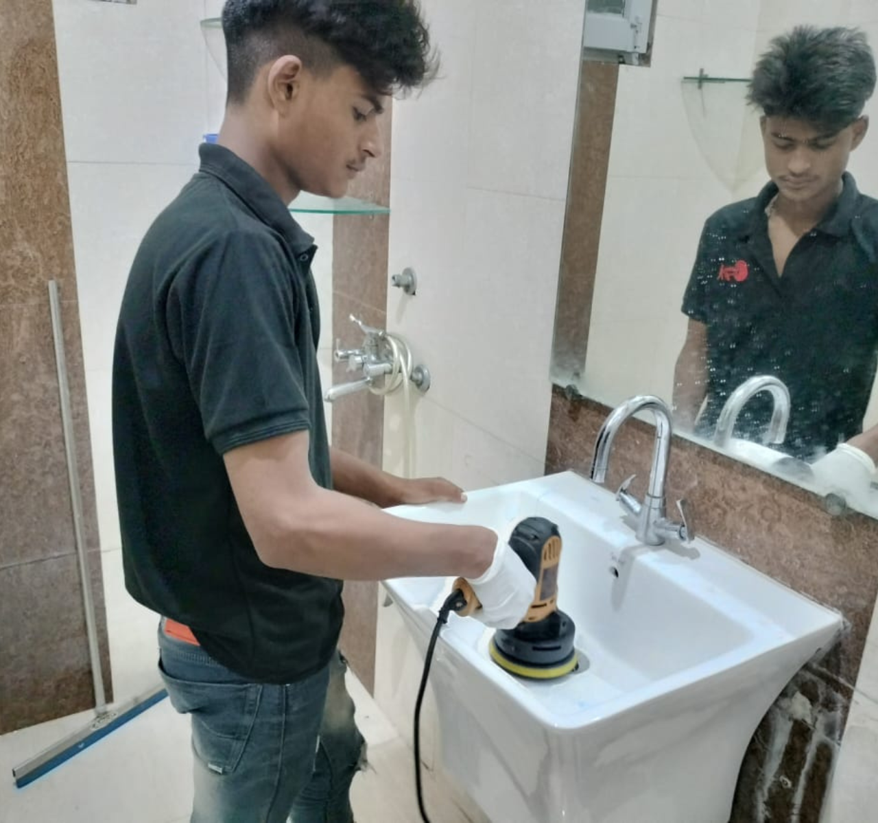 A final quality check ensures a spotless, hygienic, and sparkling clean bathroom.